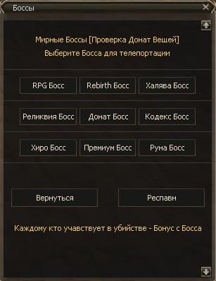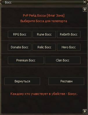 Так же есть обычные РБ через телепорт "Рейд Боссы - мини Боссы"