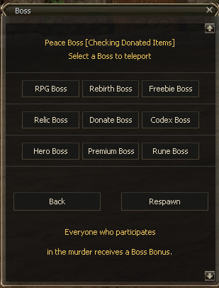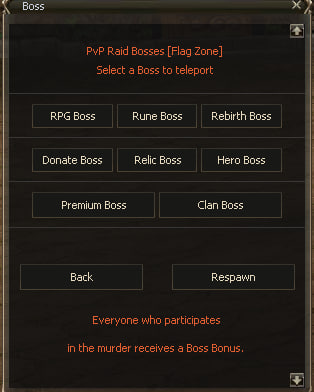 Respawn of main bosses: respawn of main bosses/respawn of epic bosses/respawn of rbk bosses