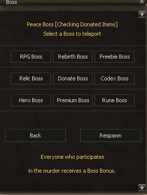 Respawn of main bosses: respawn of main bosses/respawn of epic bosses/respawn of rbk bosses