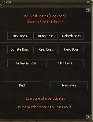 There are also regular RBs via the ‘Raid Bosses - Mini Bosses’ teleport.
